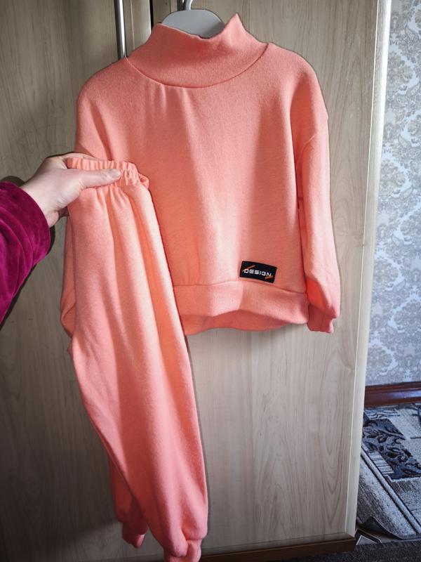 Продам отличный костюмчик на весну. Одеты пару раз. Цвет розовый персик, очень красивый. Без дефектов. Замеры: - Кофта : длина 36 см, пог 40 см. - Брюки: длина 61 см, шаг 40 см, поб хорошо тянется. Смотрится очень красиво.