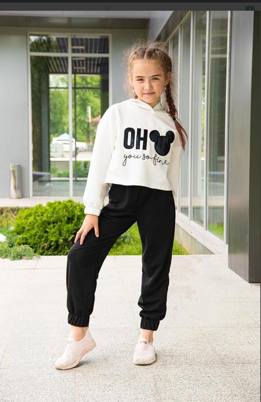 Цей спортивний костюм для дівчаток із вишивкою - знахідка для вашої модниці. Якісний - пошитий з натуральної двонитки. Але головне - стильний. Він подобається всім покупцям - і батькам, і дівчаткам. 1. Укорочена кофта з довгим рукавом, капюшоном та милою вишивкою на грудях виглядає шикарно. 2. Штани із зручною гумкою на поясі та манжетах із дуже гарною посадкою. Спортивний костюм для дівчаток: • зручний • універсальний • комфортний Підходить на різні випадки, поєднується з будь-яким спортивним взуттям. Якщо вам потрібно придбати стильний костюм для дівчинки, ми щиро рекомендуємо саме цю модель. Рост 128,134,140,146,152,158,164