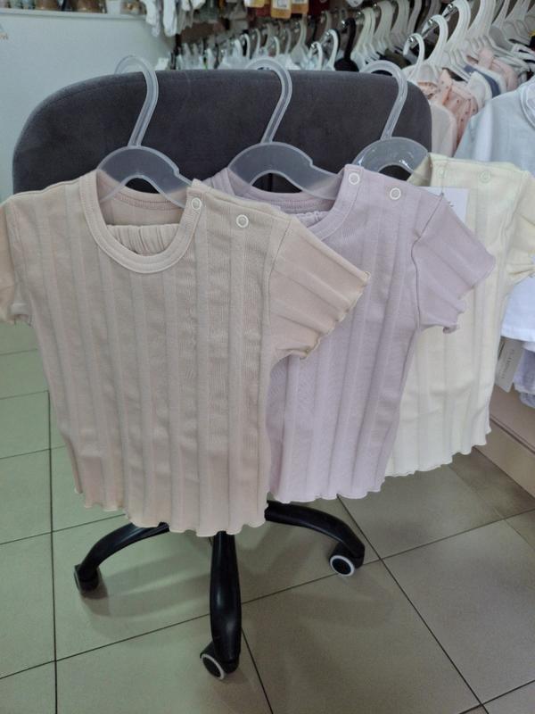 Костюм футболка и шорты для девочки, однотонный. В размере 74,80,86,92 и 98 по этикетке. Ткань измельченная жаккард 95% хлопок и 5% лайкра. Микс цветов как на фото. Заказывайте📩