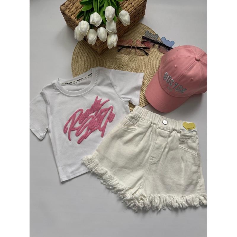 ==РОЗМІР 120=== ФУТБОЛКА довжина 33 см ширина 30 см ШОРТИ довжина 27 см стегна 34 см пояс 21 см ===РОЗМІР 160=== ФУТБОЛКА довжина 42 см ширина 37 см ШОРТИ довжина 36 см стегна 43 см пояс 27 см ===РОЗМІР 170=== ФУТБОЛКА довжина 44 см ширина 39 см ШОРТИ довжина 38 см стегна 45 см пояс 28 см Склад футболки: бавовна (95%) з додаванням еластану для еластичності Склад шортів: котон (95%) + еластан (5%) Тип шортів: джинсові, з бахромою по низу Колір футболки: білий з рожевим принтом Колір шортів: білий Застібка: еластичний пояс Розміри: 120-170 (уточнюйте наявність) Сезон: літо Стиль: міський / кежуал Країна виробництва: Китай