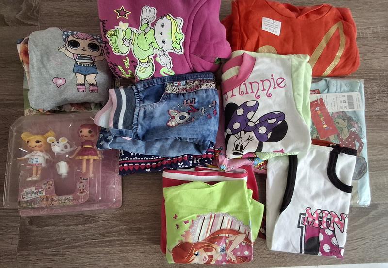 https://shafa.ua/member/boyarinka 🔥 Супер розродаж новых вещей из-за ликвидации состава. Вещи все новые, с бирками, хорошего качества! цена за все!!! Дополнительно игрушки в подарок! Описание пакета: фирменная туника ( хлопок), костюм теплый красный зайка ( хлопок, начес), костюм летний Минни туника + шорты ( хлопок), платье lol, футболка Winx ( хлопок), костюм теплый (Венгрия), джинсовые бриджи с пайетками и вышивкой, спортивные штаны ( трикотаж хлопок), лосины теплые ( хлопок, начес), пижама тепла Minni&Daisy ( хлопок, начес), пижама розовая без начеса.