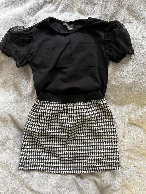 Дуже класна стильна футболочка від Zara Вік 4-5 років може бути Ми носили з такою спідничкою, теж на такий вік підійде