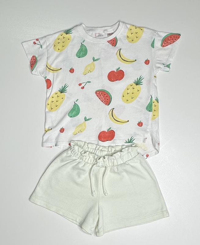 Чудовий костюм на літо! Зріст 98-110 см Футболка: довжина від плеча 37/40, ширина 36 Шорти: довжина 22, пояс 21(не натягнутий)