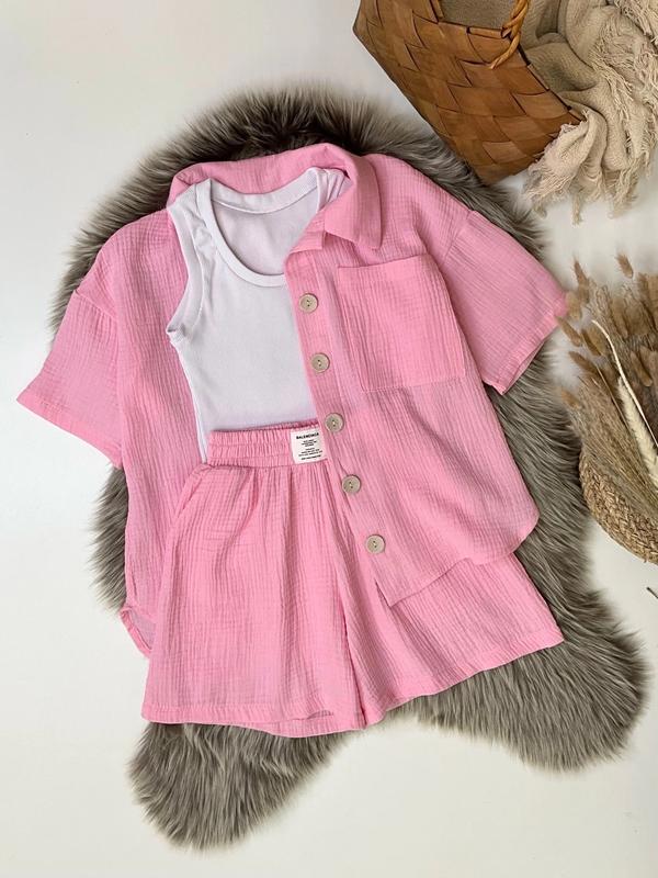 Летний, легкий костюм 3 в 1 то, что надо в летнюю жару! Рубашка майка и шорты ткань Турецкий муслин топ рубчик СУПЕРОВАЕ КАЧЕСТВО! цена 890 грн рост/длин.рубашки по переду/пог/длин. майки/пог/длин.шорт/пот/пос похибка+-2см 152/59/48/39/29/38/26/55-1шт 158/61/50/40/30/39/28/57-1шт 164/63/52/41/32/40/30/59-1шт