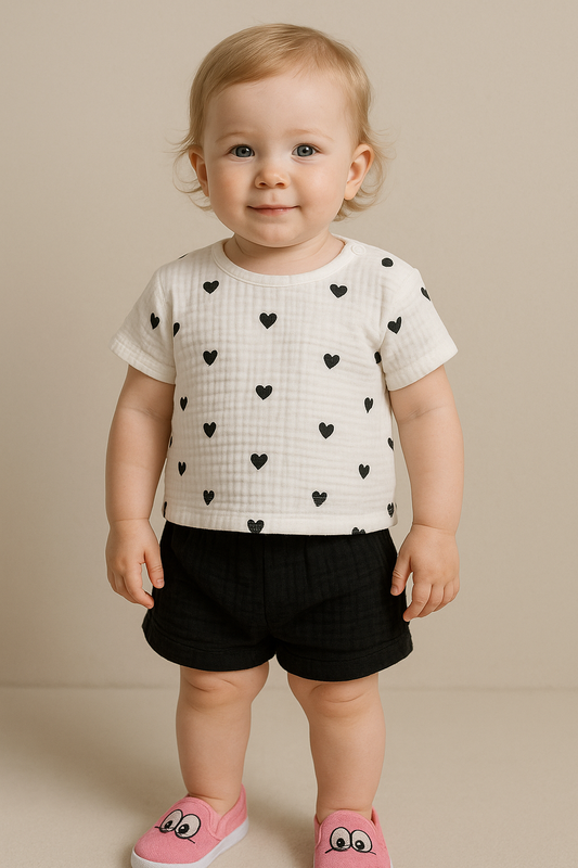 Костюм летний – футболка и шорты – собственного производства! Легкий, удобный и практичный! Тканина – муслін. Футболка застегивается на кнопки на плече. Размеры: 86 – футболка длина 29, полуобхват 28/ шорты длина 24, полуобхват 26 92 – футболка длина 32, полуобхват 27/ шорты длина 24, полуобхват 27 98 – футболка длина 34, полуобхват 28/ шорты длина 26, полуобхват 29