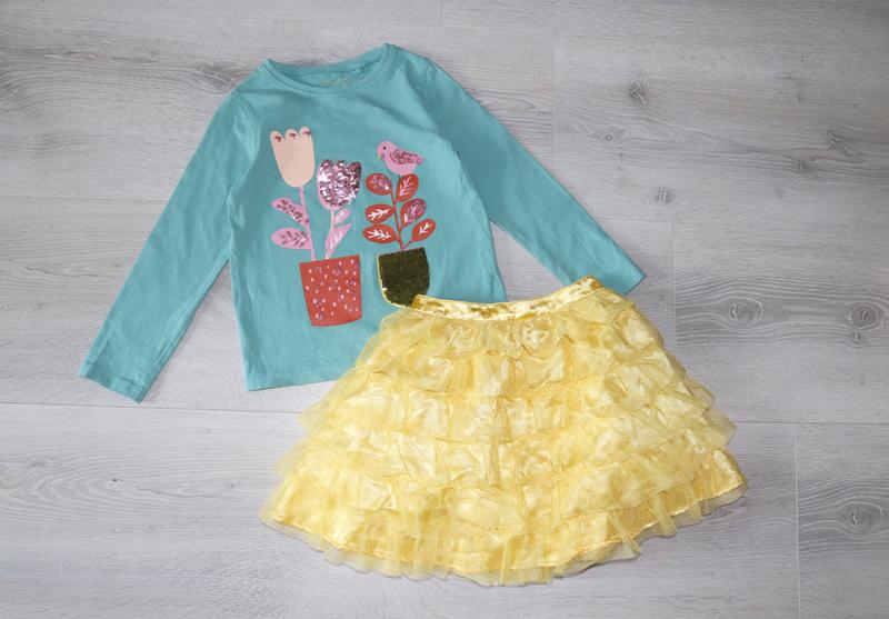 Хлопковый реглан с перевертышами: длина - 38,5, ПОГ-30, рукав от плеча - 37,5 см. Пышная солнечная юбочка: длина - 30, ПОТ - 23 см. Обе вещи по набору на 4-5 лет, в отличном состоянии.