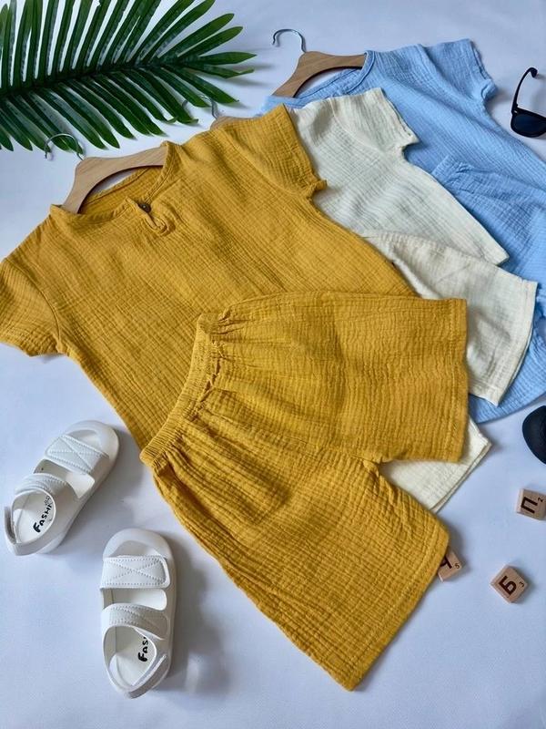 Виміри 80-Довжина футболки 34 см ширина 30*2 см Довжина шортів 25 см пояс 19*2 см 90-Довжина футболки 36 см ширина 31*2 см Довжина шортів 26 см пояс 19*2 см 110-Довжина футболки 38 см ширина 34*2 см Довжина шортів 29 см пояс 20*2 см