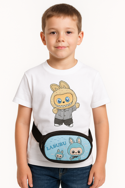 Комплект Labubu для хлопчика 2 в 1: футболка + бананка 🐰💙 Яркий образ для юного модника с любимым персонажем Labubu! 🔹 Футболка Біла, 100% бавовна Принт с оригинальным изображением Labubu в костюме Приятная к телу, дышит, не вызывает раздражений 📏 Размеры: 152 см 🔹 Бананка Стильнаумка на пояс, или через плечо, с изображением Labubu в голубом костюме Цвет: черный + голубой 📏 Размер: 27×11×8 см Легко регулируется, удобна для прогулок!Поместит телефон, ключи, деньги и другие безделушки, два отделения!