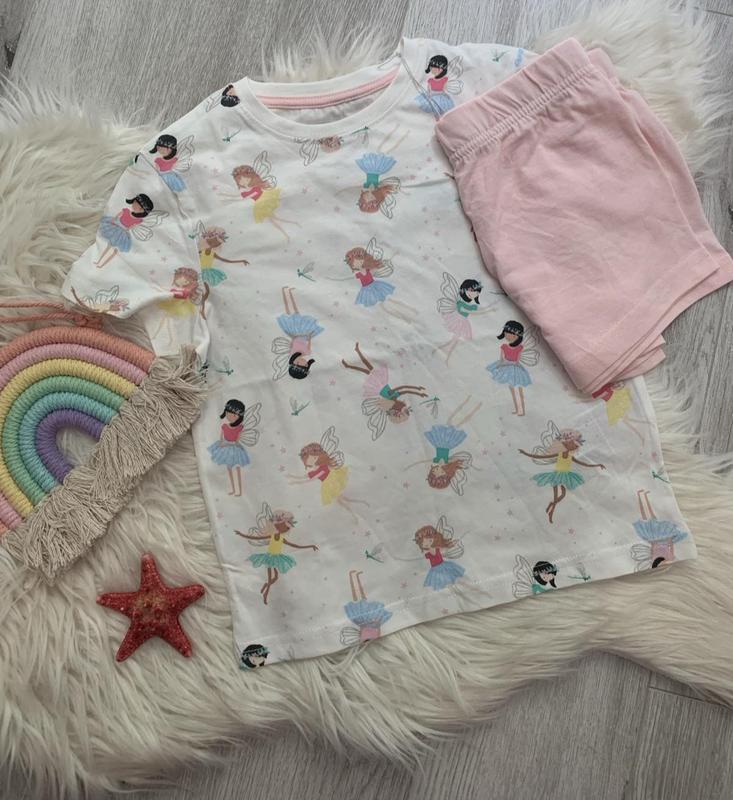 💕 Летняя пижамка/летний костюм "Фея" (футболка + шорты), для девочки от 3 до 4 лет (104 рост), бренд Primark ✅️ Описание на рост 104 см, 3 - 4 лет: - Футболка белая с ярким принтом (100% хлопок) Полуобъем плеч - 30 см Полуобъем груди - 33 см Общая длина - 41 см - Шорти однотонного рожевого кольору (100% бавовна) Полуобъем талии - 25 см, увеличивается за счет вшитой резинки на талии Общая длина - 21 см 🎀 Бренд Primark Страна производитель- Бангладеш 🔥 Нежная и очень качественная пижама! Можно носить как обычный летний костюмчик, в комплекте футболка и шортики! Набор изготовлен из качественных материалов, которые не вызывают аллергических реакций. Тканина - 100% бавовна