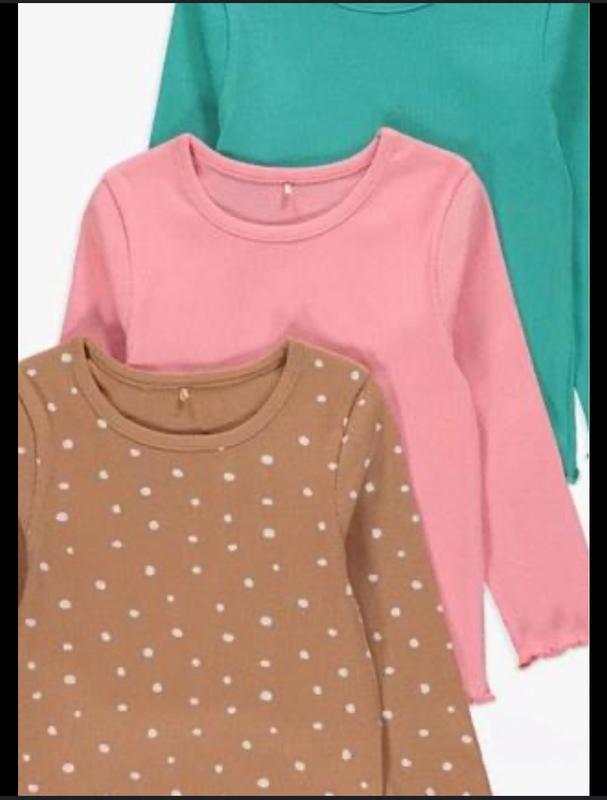 Костюми на дівчинку замовляла з сайту george Заміри: Верх Довж- 35см Рукав від плеча- 31 см Пог 28см Низ Довжина по крайньому шву- 50 см Талія -21 см Ціна вказана за 3 костюма. Дефекти плямки вказала на фото
