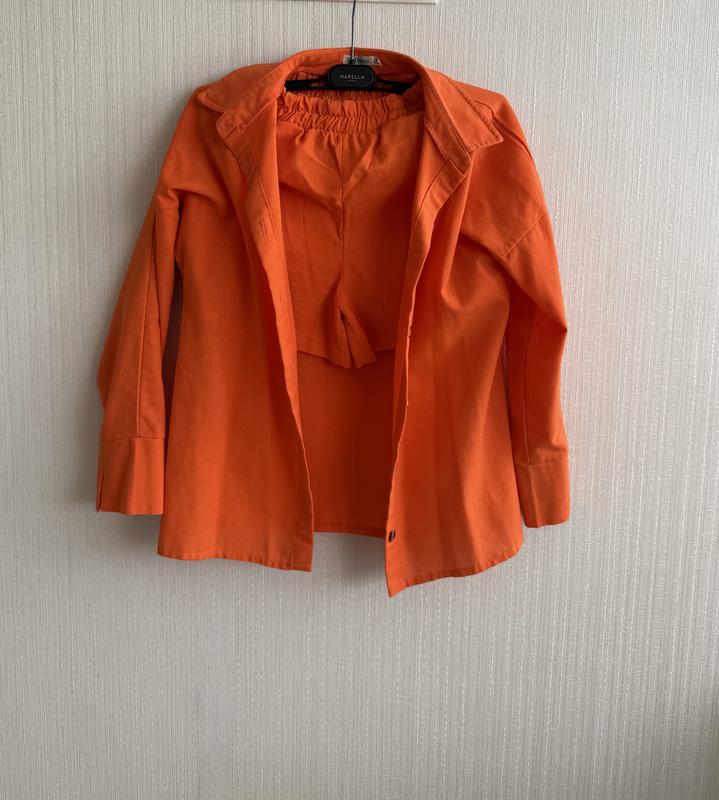 Костюм в дуже відмінному стані Яскравий, оранжевий колір( камера не передає) Матеріал подібний льону, дуже приємний до тіла Заміри: Шорти: Довжина 36 Штанина ширина знизу 28 Півобхват талії 27(на резинці, тягнеться) Бедра , півобхват 43( трішки потягнуться) Рубашка: Довжина 60 Підмишки 56(відстань між ними) Рукав 65 Груди до 100 Талія до 75 До Вашої уваги мої інші оголошення