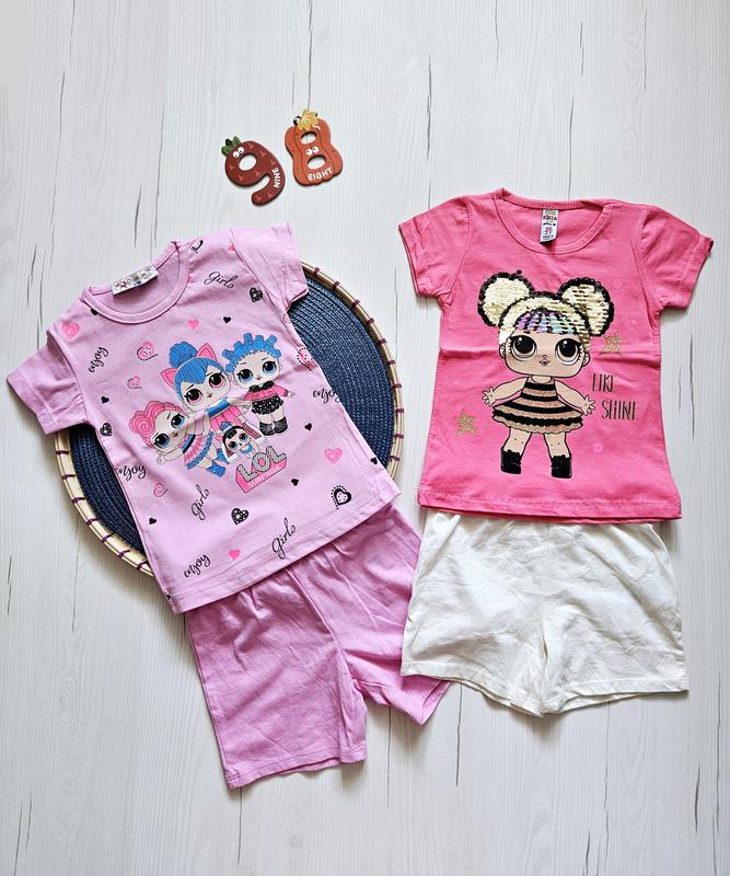 Костюм летний детский 98см, туреченица, 2-3роки, комплект для девочки с лол, футболка+шорт...
