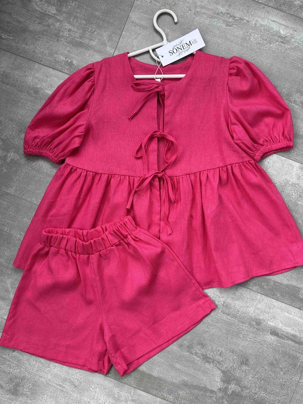 Костюм з шортами і кофтинкою на завʼязках. Натуральна тканина🌸 Українське виробництво. 🇺🇦 Розміри 116-140 Ціна 800грн🔥