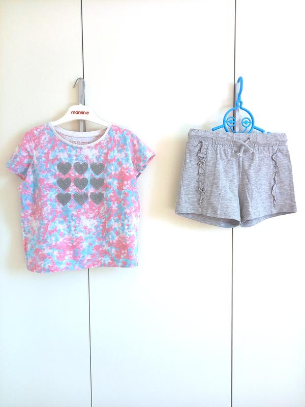 Набор летний костюм для девочки: Трикотажные хлопковые легкие шорты серые F&F 5-6 лет Длина - 22, пояс - 26 (утяжка шнурком по всей длине пояса), ПОБ - 35. Нарядная модная фирменная оверсайз oversize футболка широкая с сердцами Primark для девочки 5-6 лет рост 116 Длина - 40, ПОГ - 36. Бавовна. Фирменные, качественные в отличном состоянии. Бавовна. Смотрите все объявления.