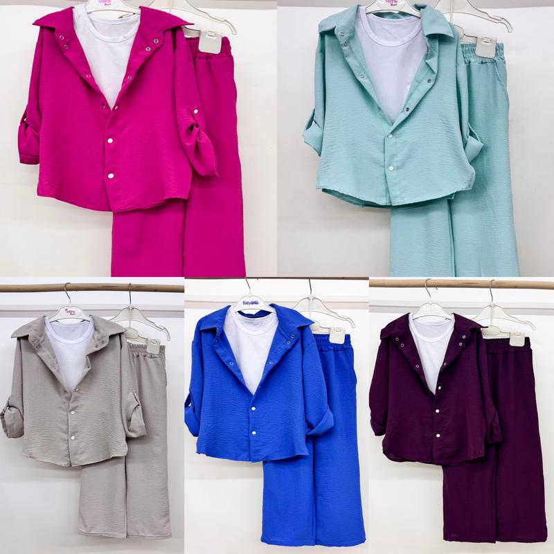 Комплект летний для девочки 3-х предметный💓 ✅Рубашка свободный крой, длинный рукав, застежка кнопки, горло устойчивое воротник, длина рукава фиксируется кулиской на кнопке, по бокам есть разрезы + штаны палаццо на широкой резинке, по бокам есть карманы, свободный крой + топ - маечка, укороченный, приталенный крой, подойдет для деток от 6-7 лет до 12-13 лет. ✅ Не садится при стирке и сушении, но рекомендуется стирать при низких температурах. Сезон: лето Полотно: американский креп + стрейч кулир, кд-22 Состав: 97% полиестер, 3% Єластан 68 размер ( рост 122-128 см) 560 грн 72 размер ( рост 128-134 см) 590 грн 76 размер (рост 134-140 см) 620 грн 80 размер ( рост 140-146 см) 635 грн 84 размер (рост 146-152 см) 650 грн 88 размер (рост 152-158 см) 705 грн #костюм детский #костюможий шифон #костюмедически #костюмдлядчинки