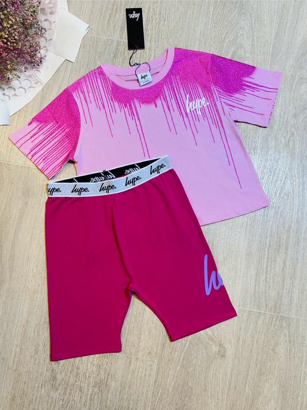 Підлітковий комплект (шорти-велосипедки та футболка) для дівчинки 13 років (152/158 см) в рожевому кольорі з брендовим написом Hype. Можна одягати як повсякденний одяг, також як шкільна спортивна форма. Доставка в межах міста Одеса безкоштовно на замовлення від 300 грн.