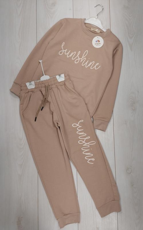 Стильный костюм для девушки от турецкого производителя "Pigidik". Размеры в наличии: 8-9р/128-134см: Свитшот: рукав от горловины-58см. длина-49см. ПОГ-40см. Штани: пояс-24см.по резинке. длина-73см. шаговый-51см. 10-11р/140-146см: Свитшот: рукав от горловины -60см. длина-53см. ПОГ-42см. Штани: пояс-26см.по резинке. длина-79см. шаговый-55см.