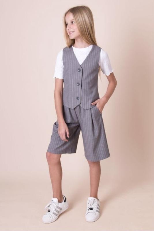 Стильний костюм для школи або повсякденного носіння. Зручні шорти-бермуди на резинці з кишенями . Жилет на підкладці.