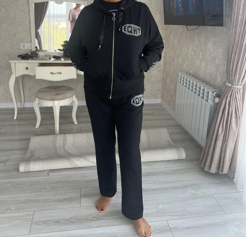 Виробник Туреччина в ідеальному стані всі камінчики на містах ог 120-132 низ 104-130 резинка довжина 67 рукав від горловини 76 штани:талія 80-112 ос114-130 довжина 105