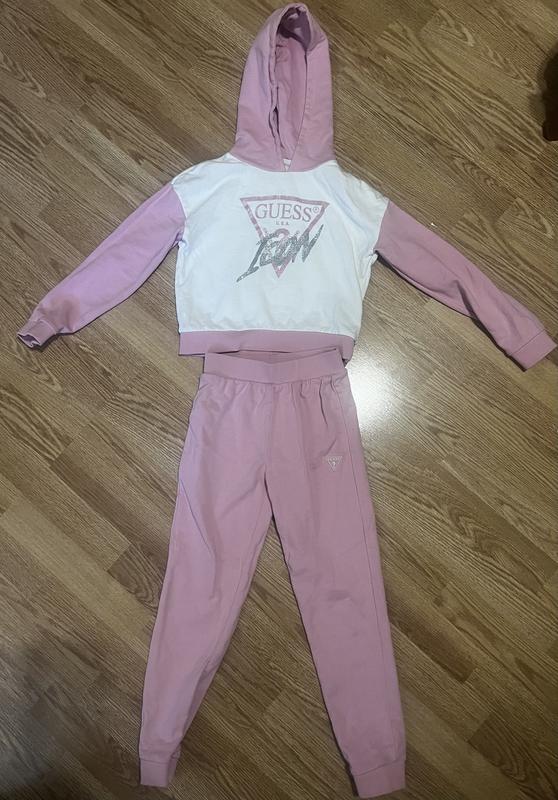 Продается костюм Guess на возраст 7-8 лет смотрите замеры штаны: пояс 25 тянется на 32 длинна штанов 76 . Кофта: плечи 41 рукав 40 длинна от плеча 38 . Костюм как новый без ньютонов.