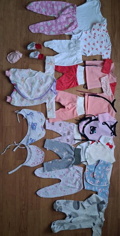 Продам пакет вещей для новорожденной девочки. подойдет для ребенка с малым весом. для девочки, родившейся ранее срок. размер 50(+/-). все вещи в хорошем состоянии, костюмчики как новые. выстиранные, чистые. человечки, ползунки, боди, пинетки, царапки, кофточки, костюмы. также имеет послеродовые трусики, подгузники 1, детская майка нова и т.д.