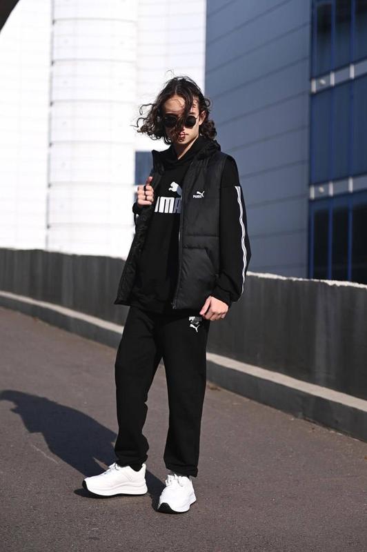 ‼️Трендовий костюм трійка ‼️№2438‼️‼️ Тканина - турецька двонитка ПРЕМІУМ ЯКОСТІ.Не линяє, не скочується, гарно тримає форму. На рукавах світловідбивні стрічки. Жилет- наповнення холлофайбер 150. 🔴Високої якості пошив. 🔴 Розміри: 140-146,146-152 Колір- чорний