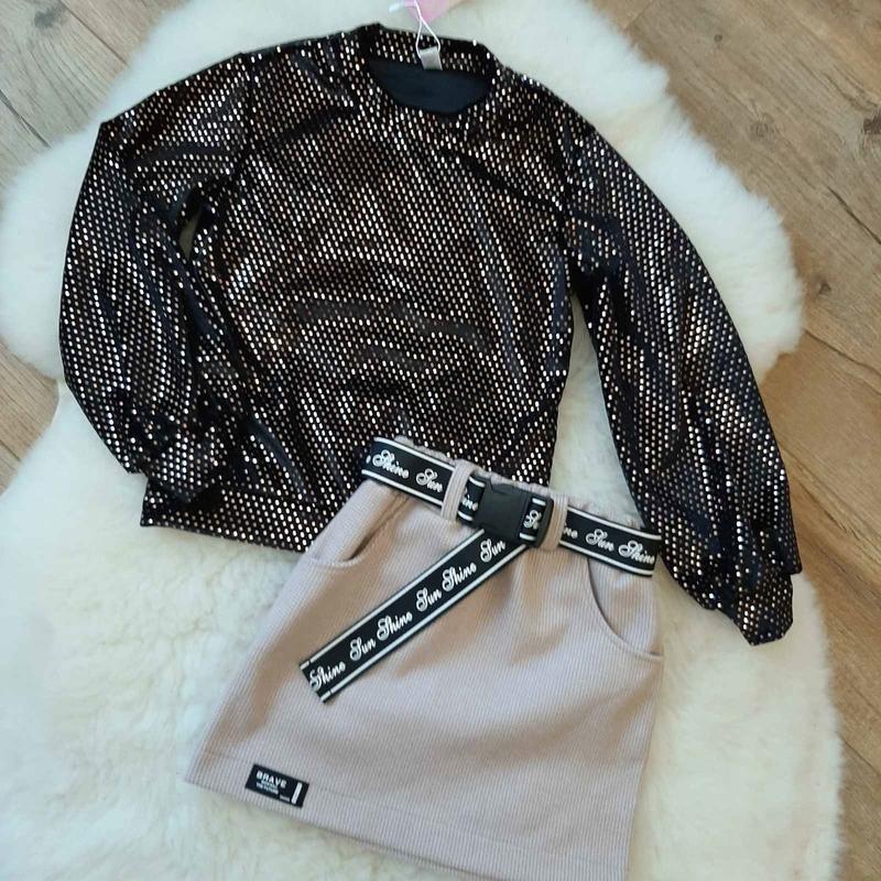 Костюм для девочки подростка. В комплект входит бархатная кофточка и юбочка кашемировая. Ткань очень м мягкая, хорошо тянется, не колется. Низ кофты и рукав на манжете. Пояс юбки на резинке, есть функциональные карманы спереди. В комплект входит ремешок из ткани. Внимание! Ремешок с каждой партией может отличаться. ПОЛНОМЕРКА!!! Размер: 158 рост Материал: велюр+кашемир 158-рост- Кофта: длина-54см, рукав-57см, полуобхват груди-41см; Юбка: длина-43см, полуобхват резинки-30см, полуобхват бедер-40см
