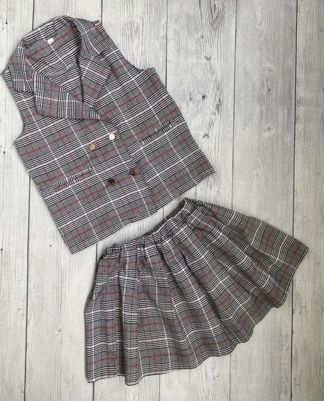 Красивый, стильный костюм делает +юбка в клетку на девочку 6-7 лет ( рост 120 см), замеры на фото