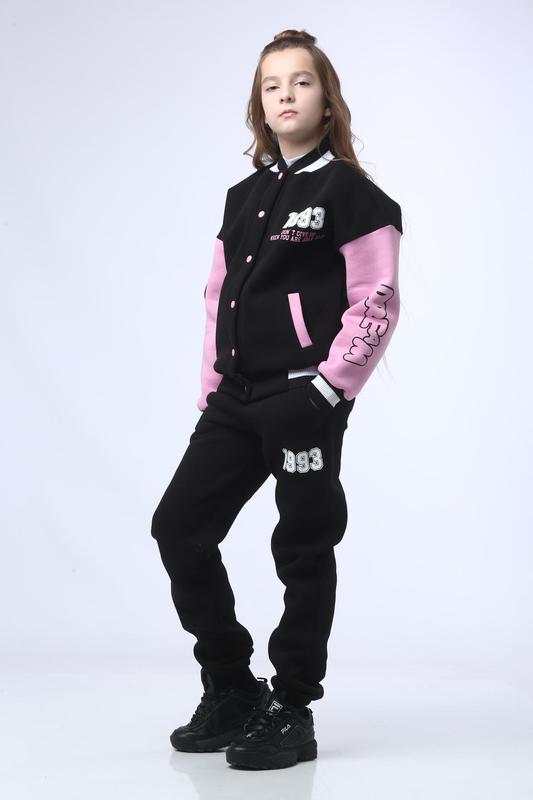 Теплый костюм, бомбер и штаны для девочки черный с розовым барби