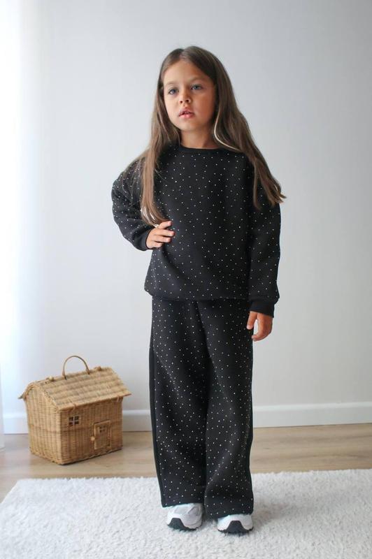 Любимые сияющие костюмы✨️ Костюмы полностью всесемые камушками 🦋 Свитшот и штаны палаццо с полной фиксацией На плотном флисе внутри Производитель Турция 📐Размеры 104, 110, 116, 122-128, 128-134 🏷Цена 820 грн