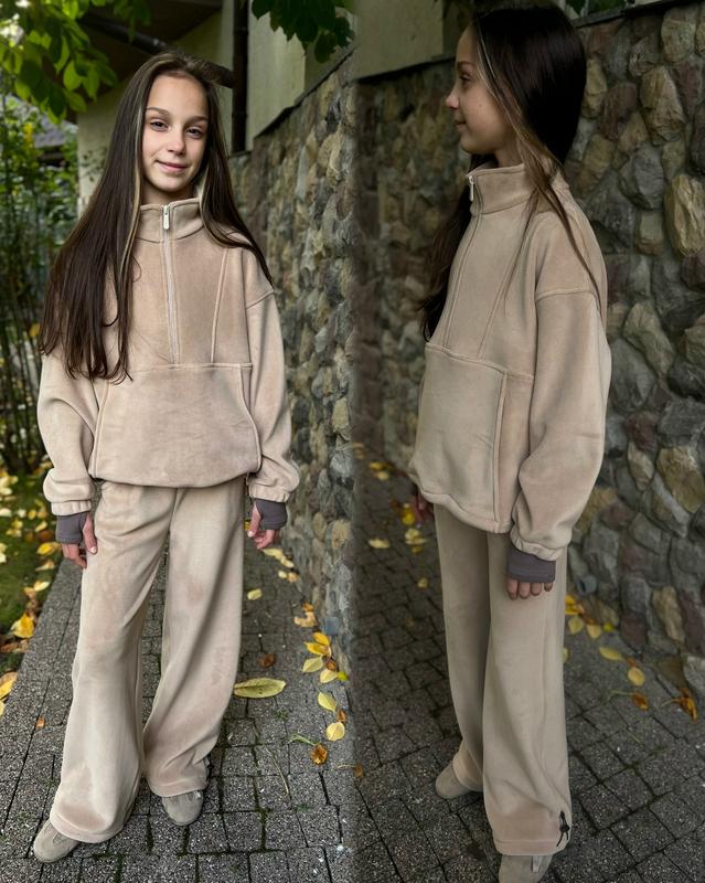 Теплющий костюм Ткань: Polar Fleece — теплый, легкий и приятный к телу, двусторонний, высокого качества 💕 Есть утяжка по низу в кофте и брюках. Удобные карманы Большемерят на размер! ЦИНА - 1330 грн. ЦЕНА на 134 г. - 1200 грн. Замеры: рукав от горловины/длина/пог/ длина брюк/шарк/бедра/пояс 134 - 56/51/48/84/60/37/28 140 - 58/53/49/86/62/38/29 146 - 60/54/50/88/65/39/30 152 - 62/55/51/90/65/40/31 158 - 66/59/52/95/66/41/32