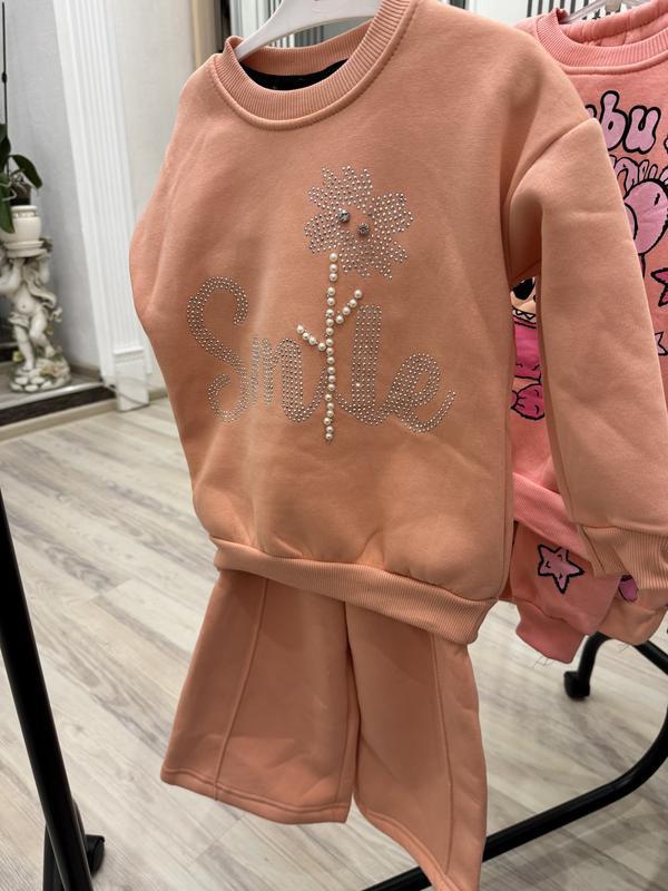 Тринитка на флісі, виробник Туреччина. Світшот та брючки палацо. Теплий, вільний крій. Прикрашений блискучими камінцями.