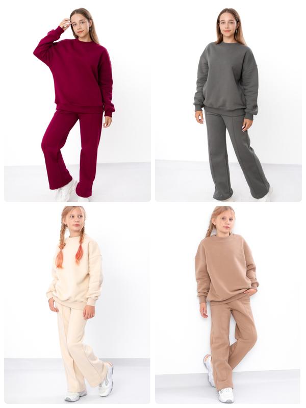 Стильный теплый костюм для девочек, подростковый костюм оверсайз, штаны палаццо, свитшот