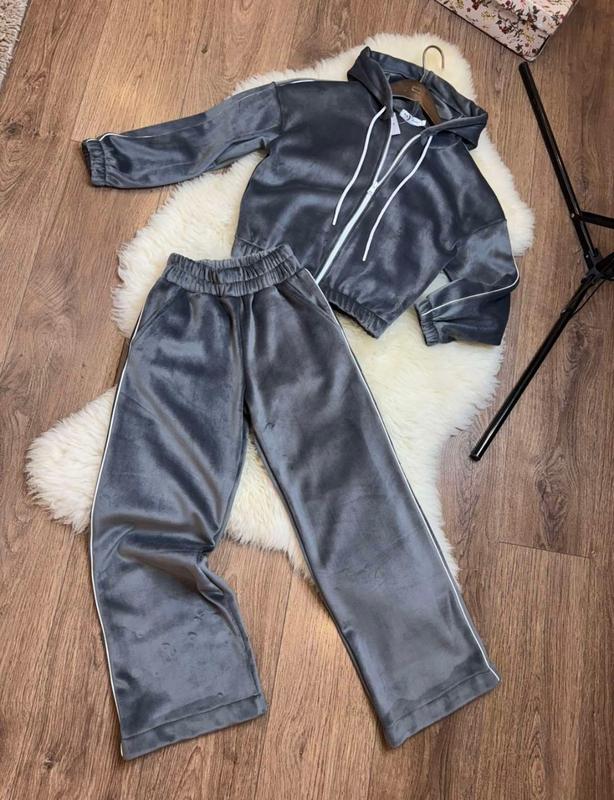 через кнопку купить только полная оплата!!! Нежный костюмчик, Ткань велюр на меху худи на молнии, и штаны свободного кроя! 🎀140-длина худи 45, пог 43,рукав 57, длина брюк 89, крок 67,пояс 26 🎀146-длина худи 46,пог 45,рукав 59,длина брюк 92,шак 69,пояс 27 🎀152-длина худи 47, пог 47,рукав 64,длина брюк 96,шаг 74,пояс 28 🎀158-длина худи 48, пог 51,рукав 66,длина брюк 99, крок 75,пояс 29 Греб