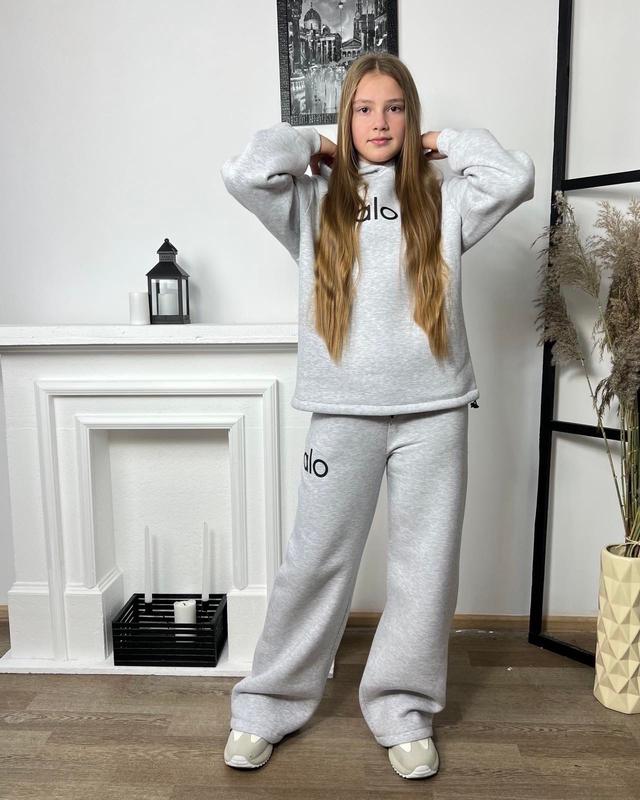 Костюм теплый худи с капюшоном низ на утяжке ткань качественная трехнить пенье (не кашлатить) на флисе манжеты измельченная в брюках есть карманы понизу утяжка ОТМЕННАЯ КАЧЕСТВО! Цена 1460 грн рост/длин.худи/пог/рукав от горловины/длин.штанов/крок/пот/пос похибка +-2см 152/58/47/64/96/7029/46-1шт 158/60/51/66/100/73/31/50-1шт 164/62/52/69/104/75/31/52-1шт