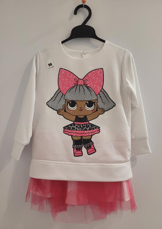 Нарядный костюм для девочки с фатиновой юбочкой Красивый розовый костюм с фатиновой юбочкой и кофтинкой. Отлично подойдет как для праздничных событий, так и для прогулок. 🔹 Кофта с застежкой на кнопку 🔹 Юбка с фатином и подкладкой 🔹 Очень красивый, яркий принт 📏 Размер и замеры: Рост 92-98 см Замеры: кофтина ширина: 31 см, длина 40 см, рукав 32 см; юбочка длина 25 см.