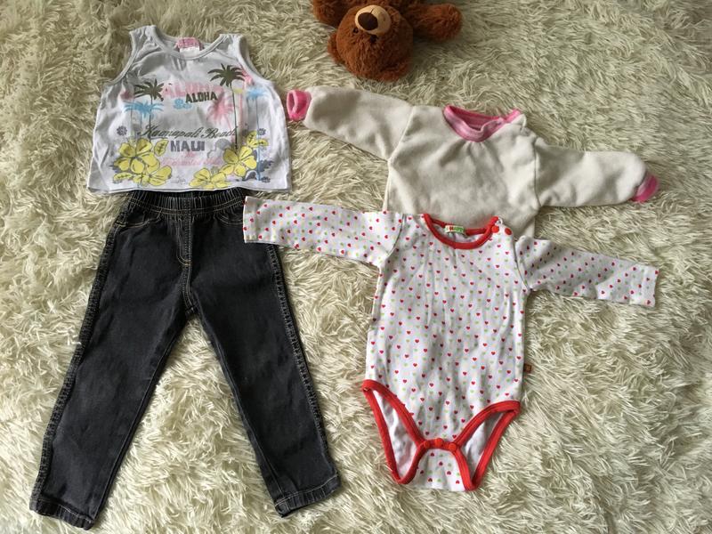 Набірчик одягу для дівчинки на 12/18 міс. Штанішки George Тепла кофточка Бодік Hipp Майка