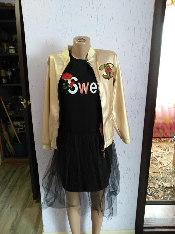 Костюм на девочку 11-13 лет, одет один раз платье и бомбер смотрится супер