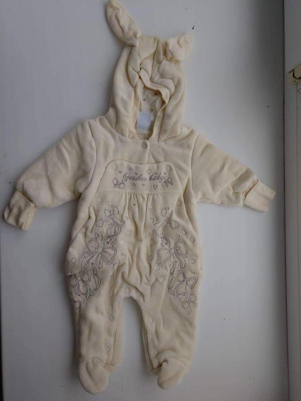 Очень красивый комбенизон теплый для девочки, зайчик с вышивкой. Состояние нового. Размер 62