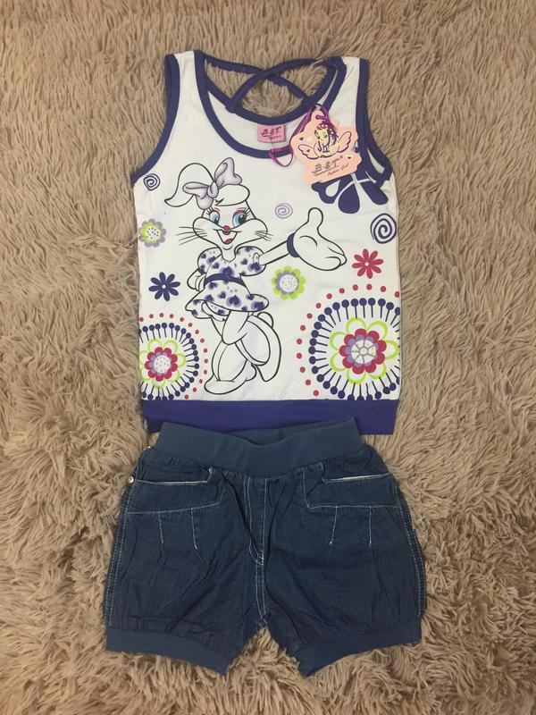 Детский костюм для девочки. Футболка джинсовые шортики. Ткань хб. Отличное качество не садится при стирке не растягивается. Размеры: 4/5, 7/8 лет.