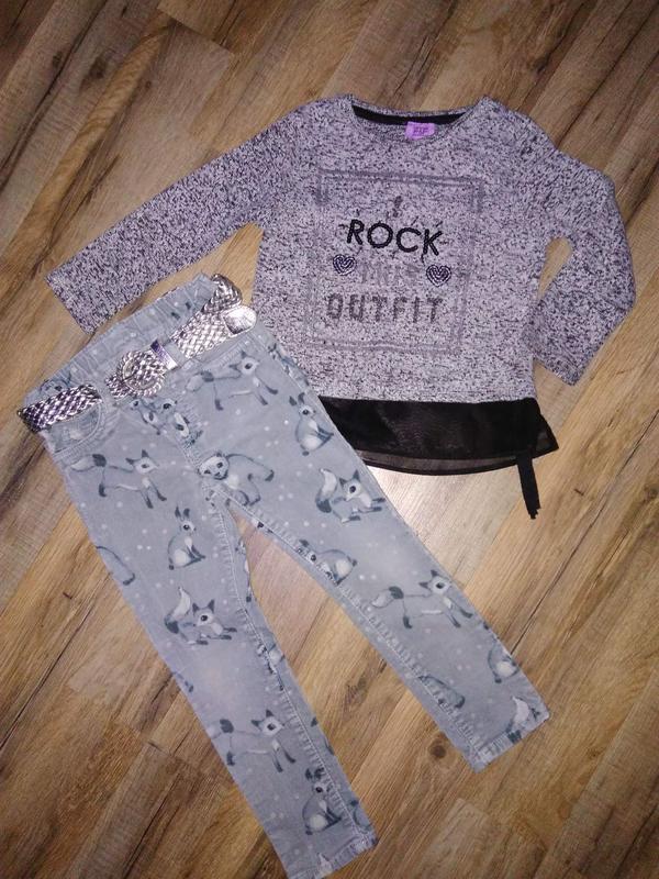 Комплект на 2-3 года Штанишки микровельвет прикольные фирмы H&M ( длина 55 см, шаг 39см, пот 25 см тянутся+ есть утяжка) Кофточка мягкая и приятная фирмы F&F (длина 38см, ПОГ 29си, рукав 31 см)
