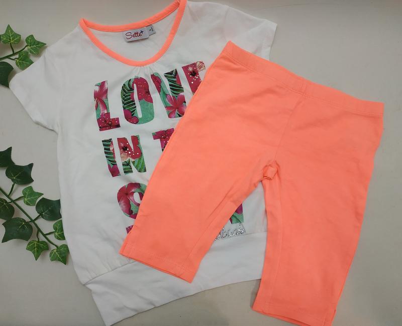 Яркий летний костюмчик Olimpias Состав: 95% хлопок, 5% эластан ✔️Возраст: 3 года Ориентируйтесь на замеры. ✔️Размеры: Длина от ворота 33.5, от плеча 40, ширина 30, плечо 6, плечи 26.5, рукав 8 Длина 32, шаг 20, пояс 24.5, ширина 27, посадка 14 ✔️Отправка по Украине Укр и Новой почтой