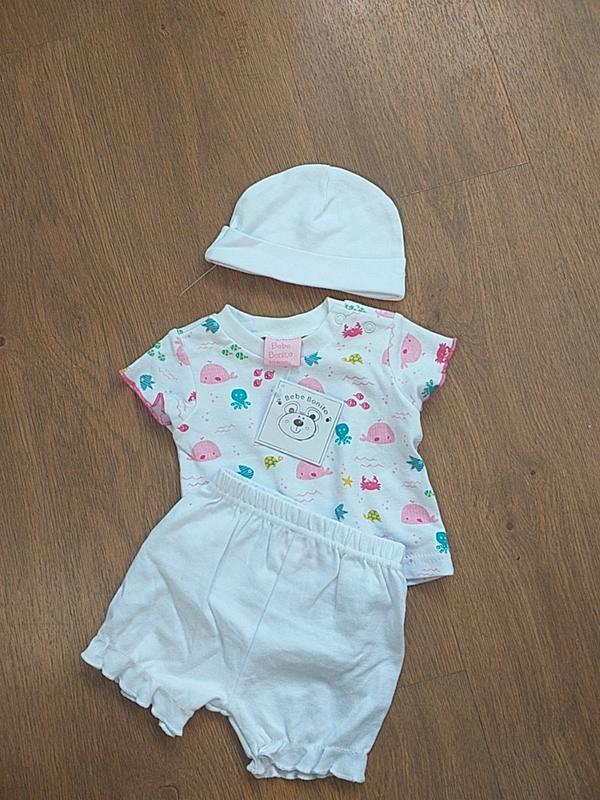 прекрасный костюм 3 ка на малышку.100%хлопок.на 0-3мес.