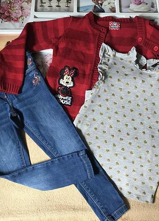 Набор 5/6лет - 199грн🔥Кофта на пуговках - длина 40, рукав 43. Футболка george - длина 42. Джинсы next - длина 62, шаговый 46, пояс 27(есть утяжка). Цена набора 330грн