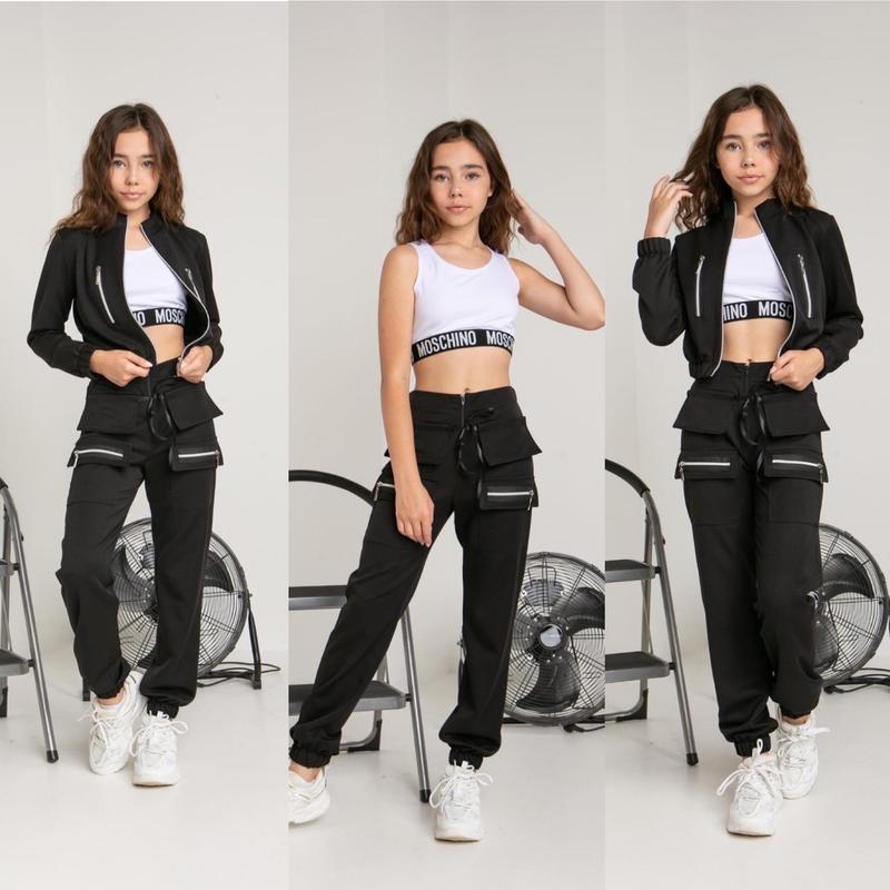 🌋 Хіт! Шикарна трійка! ТКАНИНА ТІАР Якість бомба! Заміри фабрики можлива похибка 1-2 див. 140 - бомбер дл. 38,5, шир. 36, рук. 47. Штани дл. 86, крок 65, побіди 38. Топ дл. 25, пог 31 146 - бомбер дл. 39, шир. 37, рук. 49. Штани дл. 89, крок 66, побіди 39. Топ дл. 28, пог 32