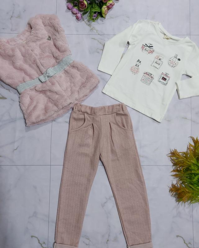 💝Бомбезный комплект для Ваших принцесс (меховая жилетка, реглан и брюки) Размер:2,4-5 лет (при выборе размера ориентируйтесь на замеры) Жилетка на кнопочках и атласной подкладке Реглан:плотный трикотаж 95%-cotton,5%-elastan, рисунок украшен стразами Брюки-плотная мягенькая ткань 65%-cotton,30%-polyester,5%-elastan, пояс на резинке,есть карманы Производитель Турция 💰 Цена 5️⃣8️⃣0️⃣ грн. 📐ЗАМЕРЫ:Жилетка: ширина плеч/длина 2г.-37/38 4г.-37/37 5л.-38/41 Реглан: длина рукава/ширина плеч/длина 2г.-28/20/32 4г.-32/21/36 5л.-33/23/37 Брюки: длина/шаг 2г.-48/29 4г.-56/38 5л.-62/43 Отправка Новой почтой и Укрпочтой ежедневно. Есть наложенный платеж по минимальной предоплате 100грн.(гарантия того что Вы заберете заказ) Каждому покупателю подарок!