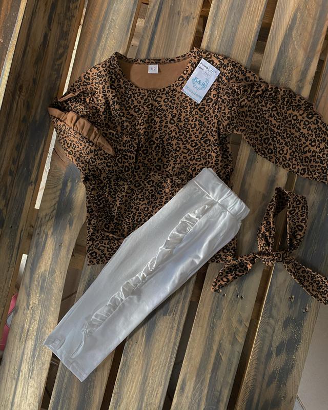 Леопардовая кофта и белые лосины. От 2 до 5 лет