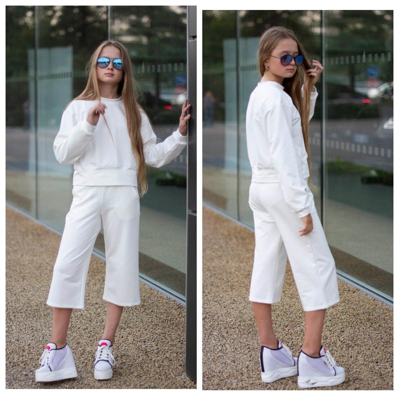 №2080 Цена -490 грн Размеры 134-140,140-146,146-152,152-158 Стильный костюм с кюлотами Ткань- турецкий трикотаж пенье , высокого качества, штаны на резинке Цвет-черный, белый, персик