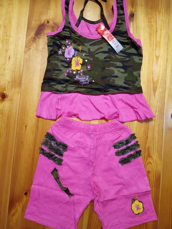 Симпатичный яркий летний костюм. Ткань натуральная 95% коттона, 5% спандекса (трикотаж), приятная, мягкая. На лето незаменим!) Майка украшена вышивкой и паетками, бисером. Цвета - коралл, розовый, салатовый, жёлтый. На возраст от 2 лет и до 8 примерно. Замеры: майка - ДИ/ПОГ шорты -ДИ/ПОБ 10 - майка: 32/28 шорты: 27/28 12 - майка: 35/30 шорты: 29/30 14 - майка: 39/32 шорты: 31/32 16 - майка: 42/34 шорты: 33/34