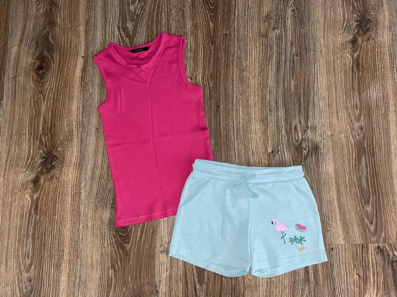 Комплект шорты и МАЕЧКА 4-6л Майка рубчик длина 44см ПОГ 26см Шорты длина 25см Пояс 26-36см, шнурочек! В идеальном состоянии! 135грн Отправлю укрпочтой и новой почтой Джастин не отправляю Обмена и возврата нет